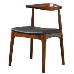 家逸 北欧实木牛角椅餐椅椅子吧台椅家用餐桌椅酒吧椅靠背休闲椅 胡桃色+黑色PU面【橡胶木】