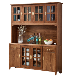 慕澜 新中式餐边柜现代简约实木框餐厅茶水柜微波炉碗橱餐柜厨房柜储物柜 A616无味