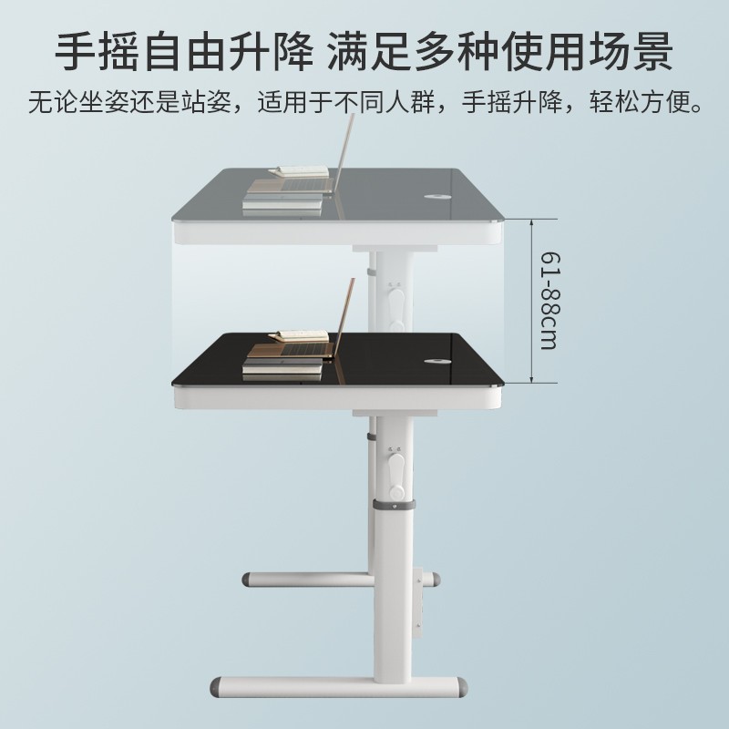 手摇自由升降,满足多种使用场景。无论坐姿还是站姿,适用于不同人群,手摇升降,轻松方便。坐站交替,拒绝久坐伤害。建议不超过45分钟,起身活动15分钟。大容量储物抽屉,环保板材桌面,加厚碳钢框架,静电喷涂工艺。 阅读全文