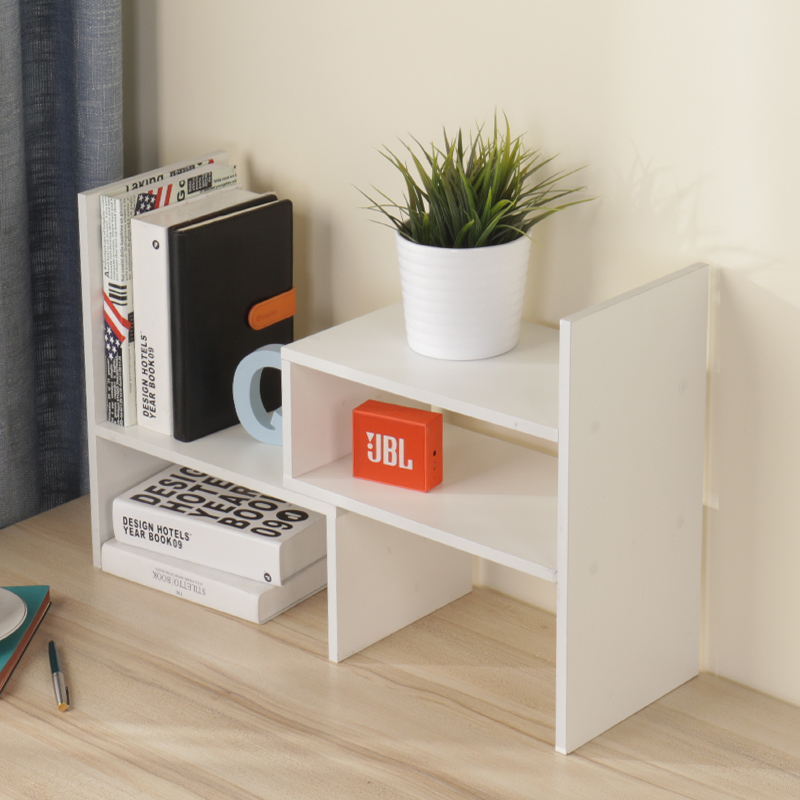 木以成居 书架书柜 桌上伸缩收纳架办公储物组合置物架子 白色LY-4004W