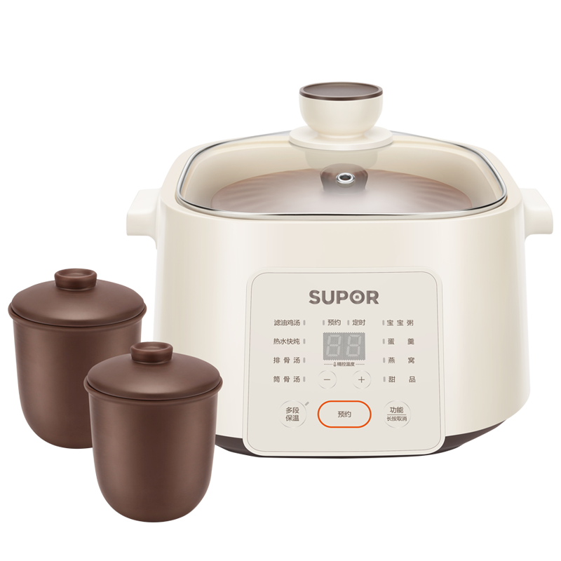 苏泊尔(SUPOR)电炖锅 电炖盅 家用多功能炖盅 智能预约定时电砂锅煲汤锅 煮粥神器炖汤锅燕窝滤油 内胆容量 2.2L 3个紫陶内胆