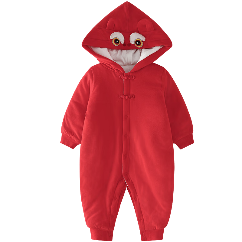 迷你巴拉巴拉男童女童外出连体衣宝宝加绒保暖萌趣连帽爬服哈衣 中国红60611 90cm