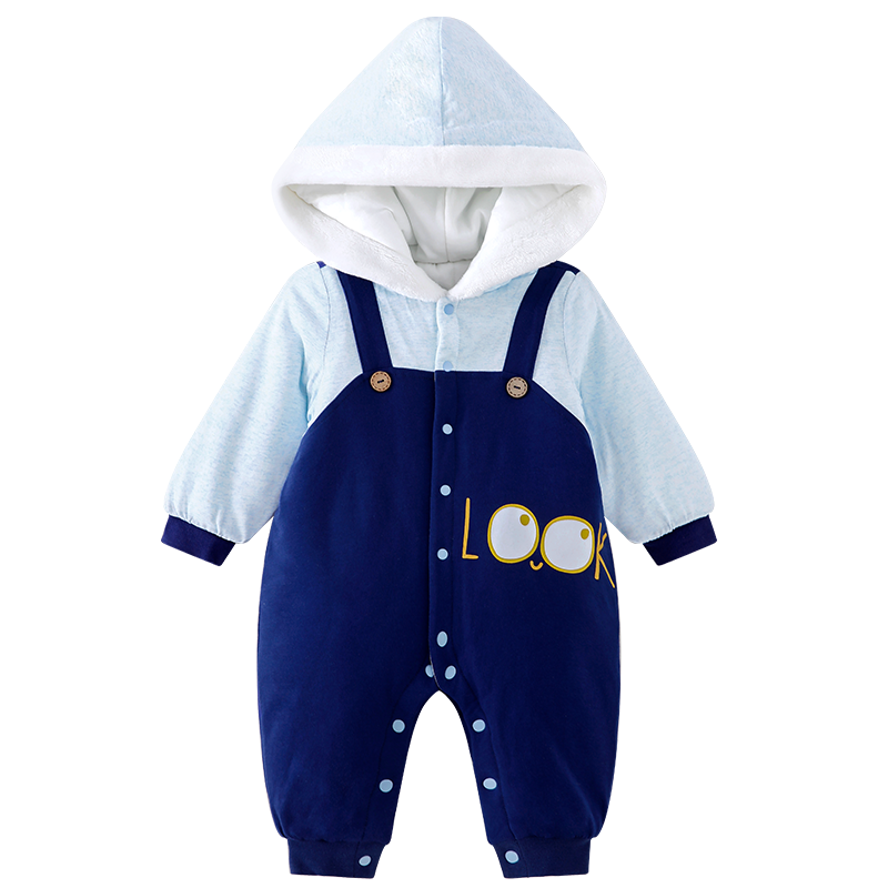 藤之木工房 婴儿衣服冬季纯棉加厚连体宝宝冬装夹保暖儿童哈衣 宝蓝色 90cm