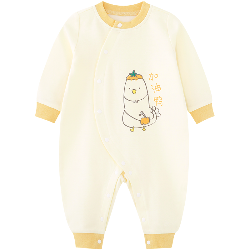 papa爬爬春秋婴儿连体衣新生儿衣服棉男女宝宝束脚爬服儿童可爱休闲款 米白色 90cm