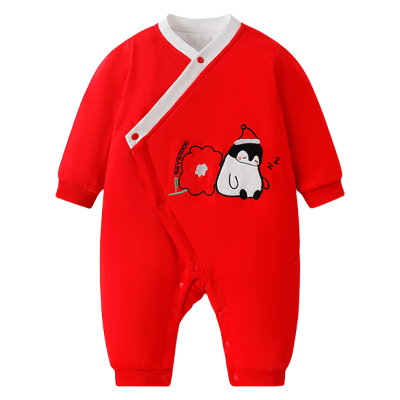 皮偌乔新生儿纯棉连体衣秋冬男女宝宝衣服婴儿红色过年服哈衣爬服 红色-侧襟蛤 73cm(9-12月)