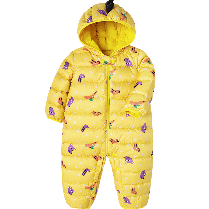 迷你巴拉巴拉儿童羽绒服宝宝轻暖连体衣男女童外出爬服 黄色调00337 90cm