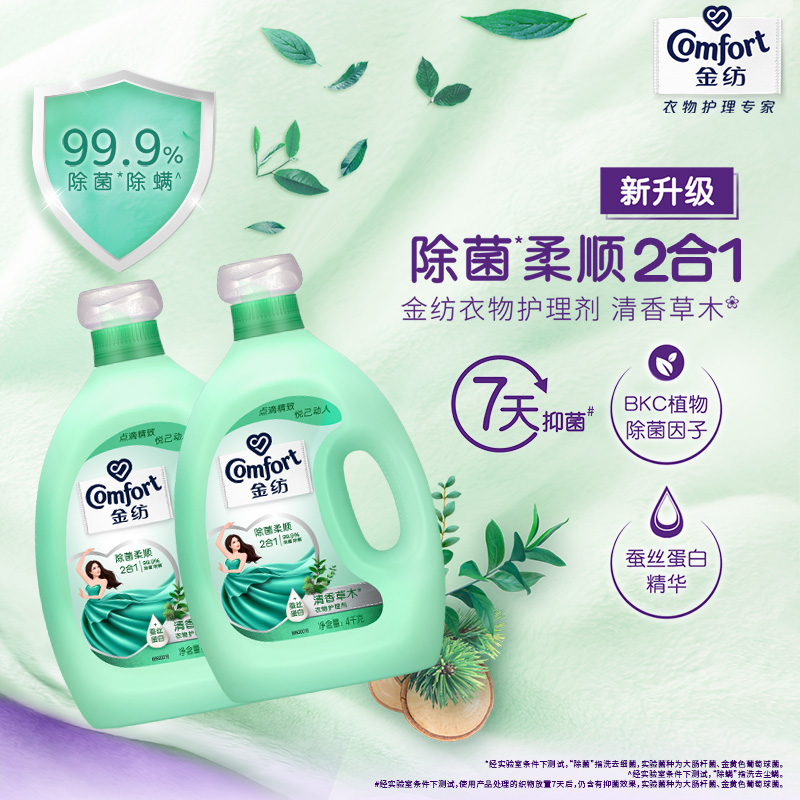 这款金纺纺柔顺剂,全新Pro-Care多效护衣系统,能中和洗衣液残留、柔软舒适衣服、去除静电、护形护色、减少褶皱、24小时留香。 蕴含天然蚕丝蛋白精华,渗入纤维底层,深层滋养。添加纳米级小分子,如梳子般理顺洗衣造成的毛糙纤维。还能形成织物保护膜,筑成屏障无惧洗涤损伤。