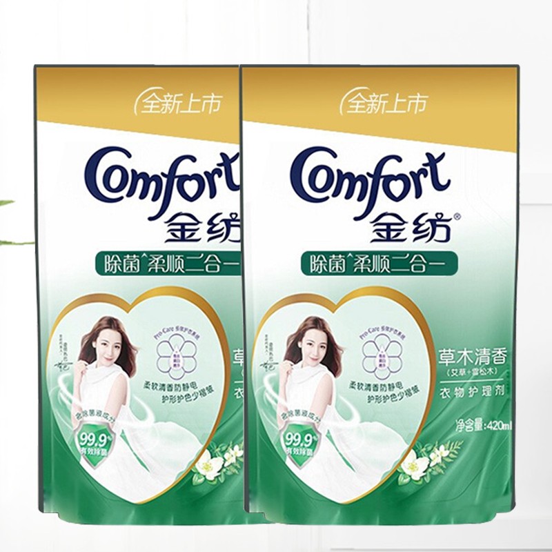 金纺柔顺剂 衣物护理剂420ml*4袋草木清香去残留柔顺剂家用体验装 -zw【京喜清仓特价】