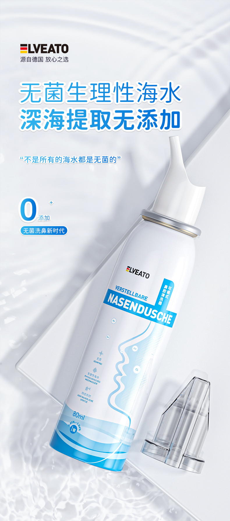 安全无添加、缓解鼻塞、孕妇可用:德国 ELVEATO 无菌生理性海盐水喷雾 80ml 29元