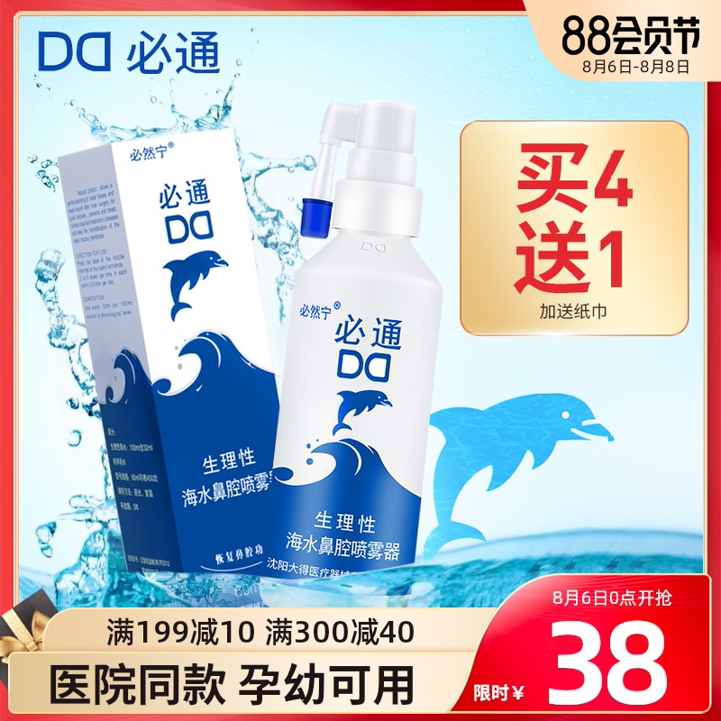 必然宁必通生理性海水鼻腔喷雾器海盐水清洗鼻子孕妇鼻炎儿童婴儿 45元