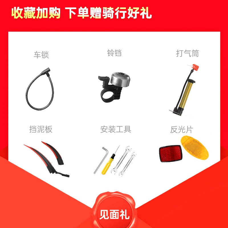 机械碟刹~低跨度车架~减震前叉~7级变速~高碳钢车架~定位牙盘~静电烤漆~舒适车座
