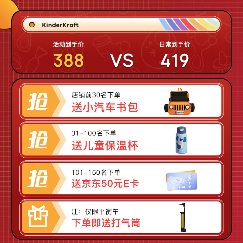 95%已组装,安装不费力;给宝宝一辆好车,材质很重要,精选碳钢,加厚管件,承重性能强,使用年限久;加宽优质橡胶胎,抓地牢不易爆胎漏气,骑行舒适又安全。 阅读全文 -