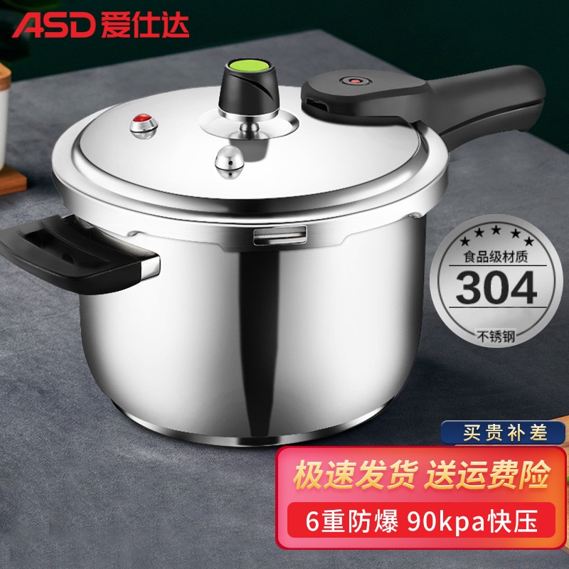 爱仕达高压锅304不锈钢家用燃气电磁炉压力锅6.5L-24CM防爆六保险
