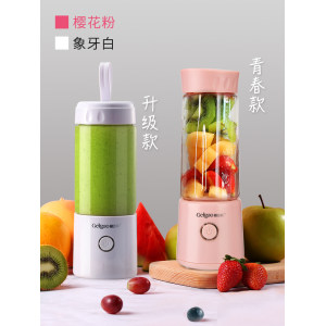 九阳榨汁机,杯身容量300ml,美观又时尚,将强劲的电机和刀头隐藏在杯盖里,非常的轻巧便携,彻底告别传统榨汁杯底座的又笨又重,40S快速榨汁,鲜榨现喝,非常方便。居家、办公室、旅行携带都适合,超强续航,满电约可榨10杯。 瓶身采用婴儿奶瓶级材质,安全无毒,最高可达 15000转/分,搭载精钢四叶刀头,轻松破壁,可爱杯身设计,操作简单,轻触防误开开关,双击开启,单击关停,使用更安全。内置1400毫安锂电池,满电状态下约可榨10杯。