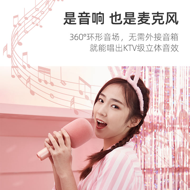 JBL音乐唱将KMC500无线麦克风蓝牙话筒音响一体麦克风全民/K歌 儿童话筒K歌宝家庭ktv露营K歌樱花粉