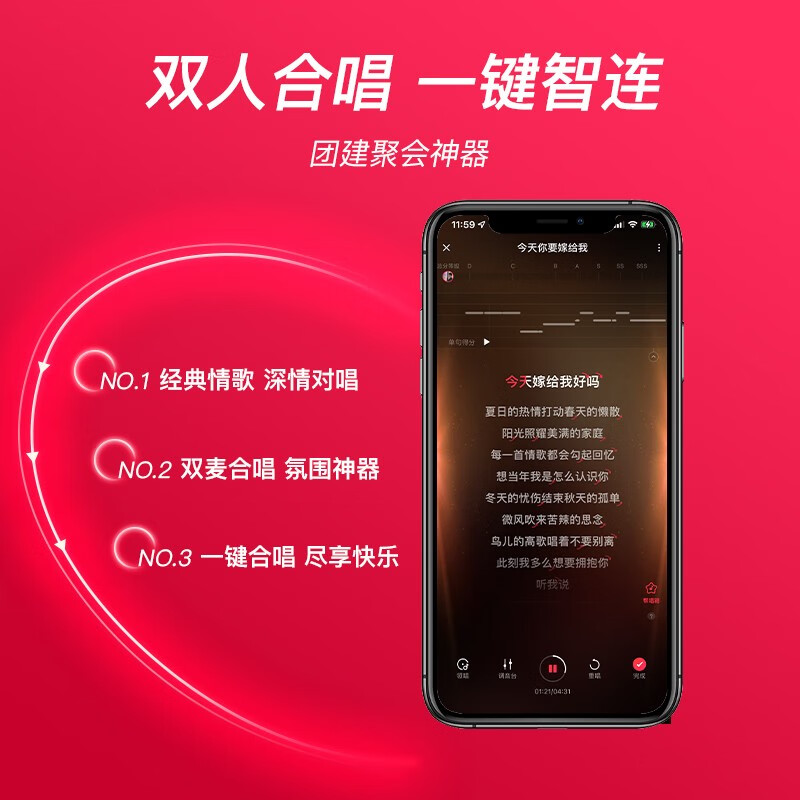 具有多种嗨唱模式,双喇叭双低音,智能动态降噪。
