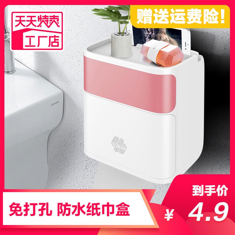 卫生纸盒卫生间纸巾置物架厕所家用免打孔挂壁式创意抽纸盒卷纸筒 4.9元