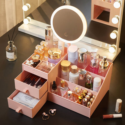 化妆品收纳盒带LED镜子护肤品置物架 21.9元