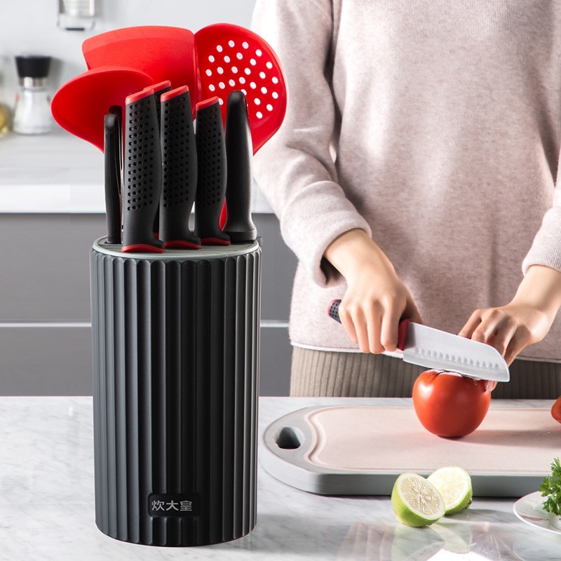 炊大皇刀具套装十件套不锈钢刀具菜刀不粘锅硅胶锅勺厨具套装十件套结婚送礼套装 十全十美十件套