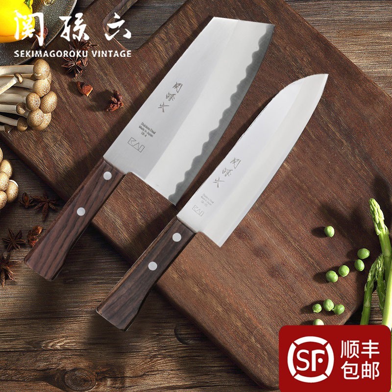 貝印 贝印(KAI)日本原装进口关孙六厨房菜刀轻便多用斜口切菜刀中华刀三德刀日式厨刀刀具套装