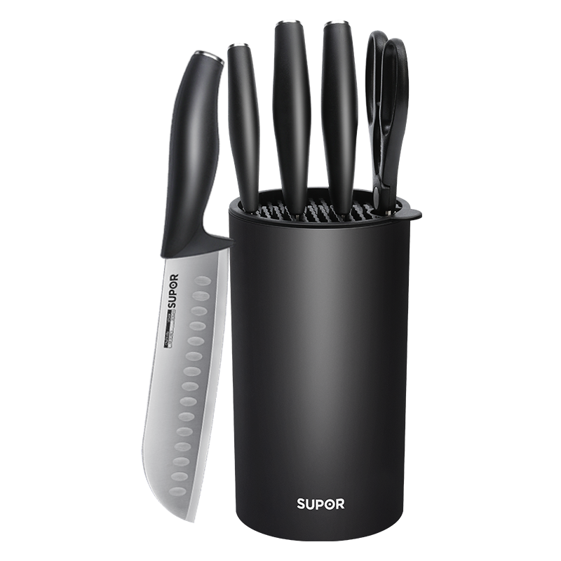 苏泊尔(SUPOR) 刀具套装厨房不锈钢菜刀切片刀斩骨刀果蔬刀水果刀多用剪刀家用锋利刀具 【魅力黑6件套】TK1936E