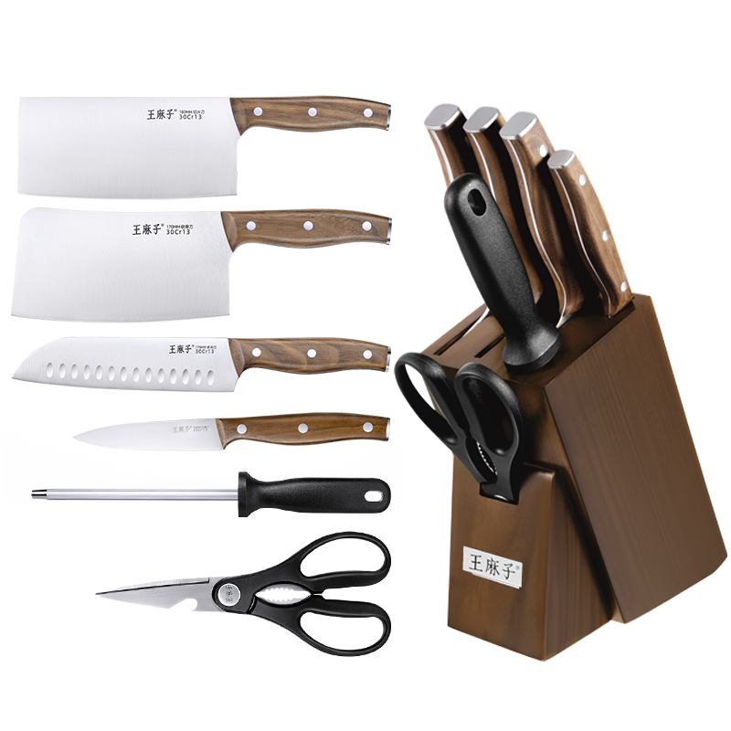 王麻子 刀具套装 家用砍斩骨切肉切菜刀套装不锈钢锋利厨房全一套 锋利七件套