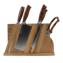 拓牌是隶属于广东拓必拓科技股份有限公司的刀具品牌,公司成立于1997年,目前总部设在广州,是一家生产不锈钢刀具和厨具产品的制造企业,拓牌刀具的产品选料考究,多选用日本武生钢材厂与德国蒂森克虏伯钢铁公司优质钢材,因此产品在中高端市场广受青睐,近一半产品销往海外,并为多家知名厨具厂商代工 此款 玄武系列 选用进口大马士革钢材,刀身经典波浪纹设计,韧性强耐腐防锈性能好,刀具中间层芯钢为AUS-10高碳钢,左右两面夹钢是各22层大马士革低碳不锈钢,将45层钢材锻造在一起制造出一把花纹精美绝伦的大马士革刀,刀刃采用16°手工精磨V式开刃,锋利耐用,一体化设计刀背打磨抛光,握刀位同样采用手工精磨抛光,防止使用中误伤,手柄为G10材质,提升握感舒适度,符合人体工学设计,使刀身更修长。套刀包含:菜刀、砍刀、三德刀、厨师刀、水果刀、刀座。 阅读全文