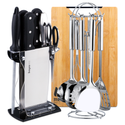 拜格(BAYCO)刀具套装15件套厨房菜刀菜板套装锅铲勺砧板刀座厨具组合CJTZ-938