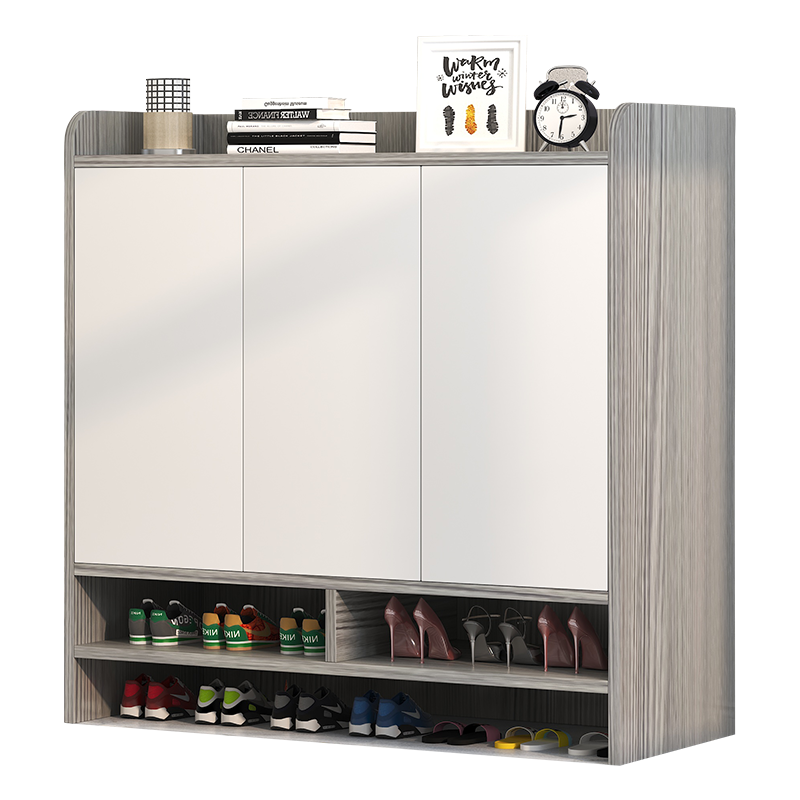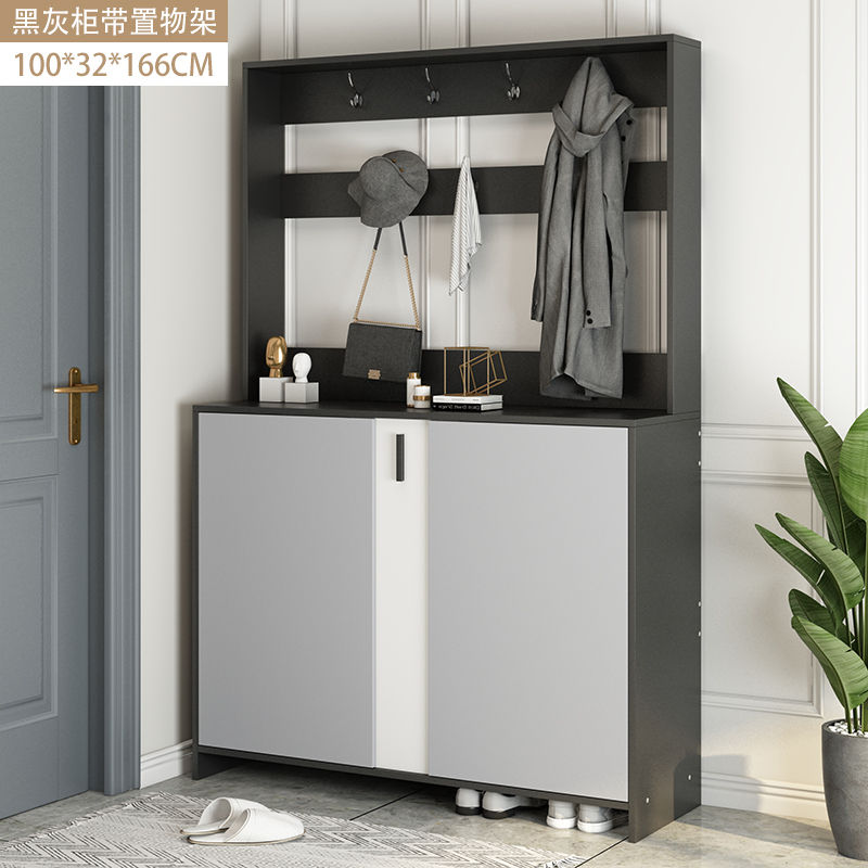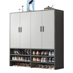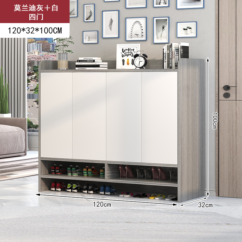普派鞋柜现代玄关家用门口大容量收纳储物柜客厅收纳柜子 【钜惠】莫兰迪灰色+白四门带格120cm