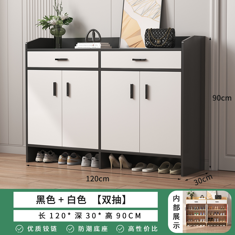 木匠印记鞋柜简约简易家用大容量防尘储物鞋客厅防潮玄关鞋柜架子 推荐:【双抽】玄黑色 120*30*90cm