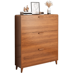 木以成居 鞋柜门口简约现代大容量三门玄关柜阳台储物抽屉柜子北欧鞋柜 深胡桃色 LY-42430100C