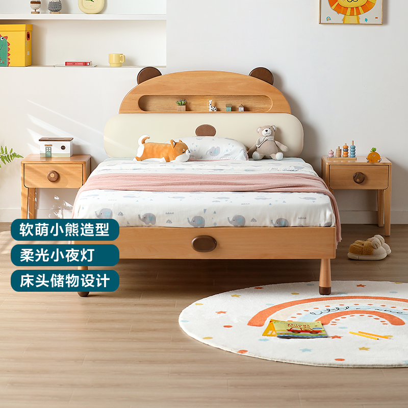 甄选优质榉木为主材,材质坚实,安全稳固,有如强壮小熊给你保护。选用天然植物提取的木蜡油涂装,滋养木材的同时无刺激性气味,更安全健康。经过权威机构检测,甲醛释放量低于国标要求,保障孩子和家人健康,使用更放心。 床屏软包设计,给孩子背部舒适支撑,靠在小熊的怀里,温暖柔软,不用担心磕碰受伤。选用高回弹海绵,软糯高弹,倚靠舒适,经久耐用,久用不易塌焰变形。 软包采用硅胶生态皮打造,透气柔韧,易清洁易打理,不用担心小熊脸蛋变脏脏。 贴心柔光灯带,暖光不刺眼,小手一触即亮,驱散黑暗,宝贝独睡夜起也不害怕。 阅读全文 -
