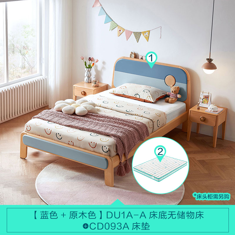 LINSY KIDS 林氏木业(Kids)实木框儿童床女孩公主床卧室男孩单人床家具 【蓝色】儿童床+CD093A床垫 1200mm*2000mm