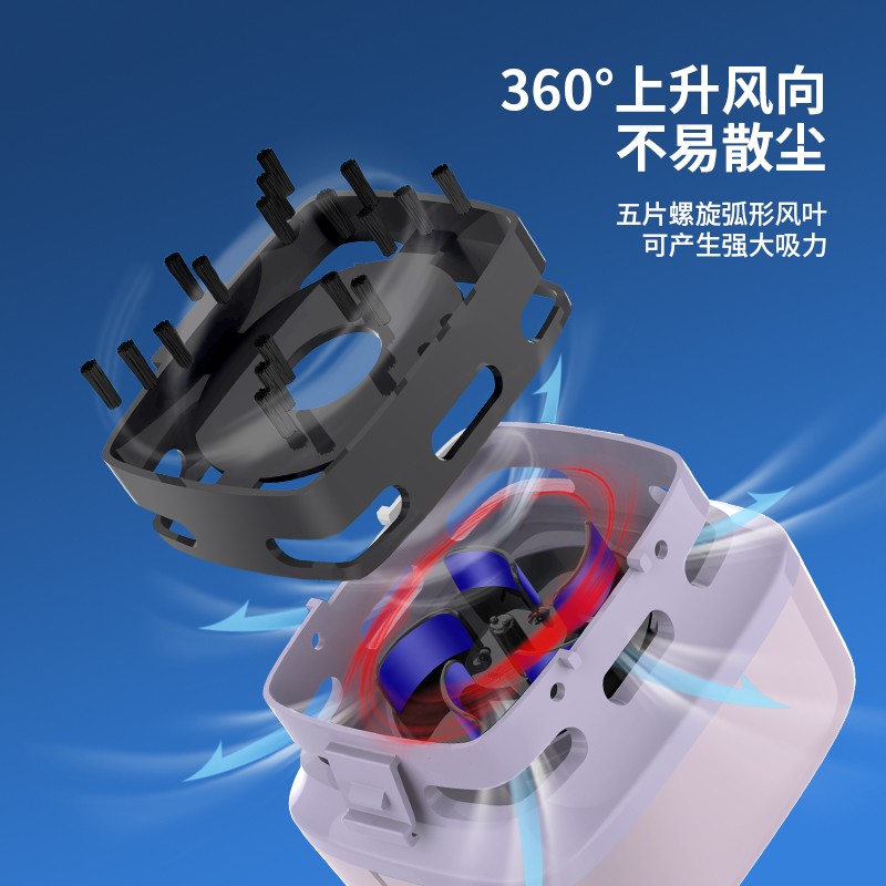 清洁器机身内部配置五片螺旋弧形风叶,可产生强大吸力不易散尘。机身底部设有7组尼龙毛刷,有效聚集桌面碎屑,可清洁铅笔屑、橡皮屑、饼屑等。按压机身顶部开关按钮,即可开启工作状态再次按压,停止工作。 阅读全文 -