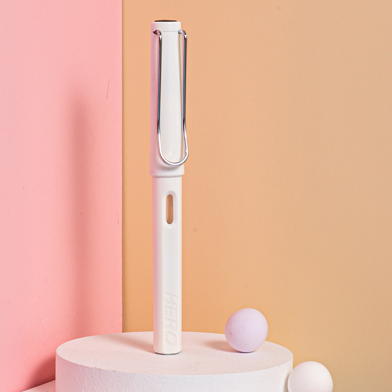 英雄(HERO)钢笔359 正姿 白色 EF尖薄厚片工艺学生练字钢笔 (附加6支墨囊)铱金钢笔签字笔