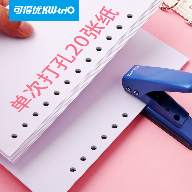 可得优(KW-triO) 按压式打孔机单孔打孔器文具手工手动A4纸打孔档案打洞机 蓝色【20页】