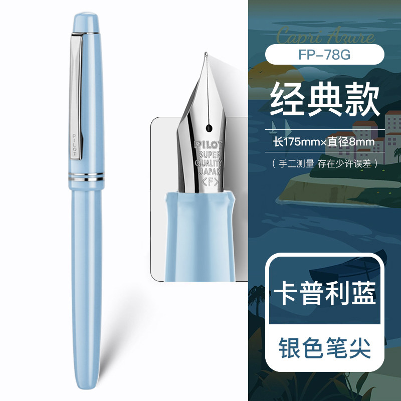 日本百乐(PILOT)78G新色限定款钢笔礼盒套装 意式风情钢笔男女士成人学生用练字送礼 普利蓝灰 F尖0.4-0.5mm(正常书写)