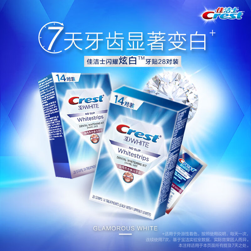 佳洁士闪耀炫白牙贴14对28片装美国进口美白去黄去渍轻松美齿 7天牙齿显著亮白