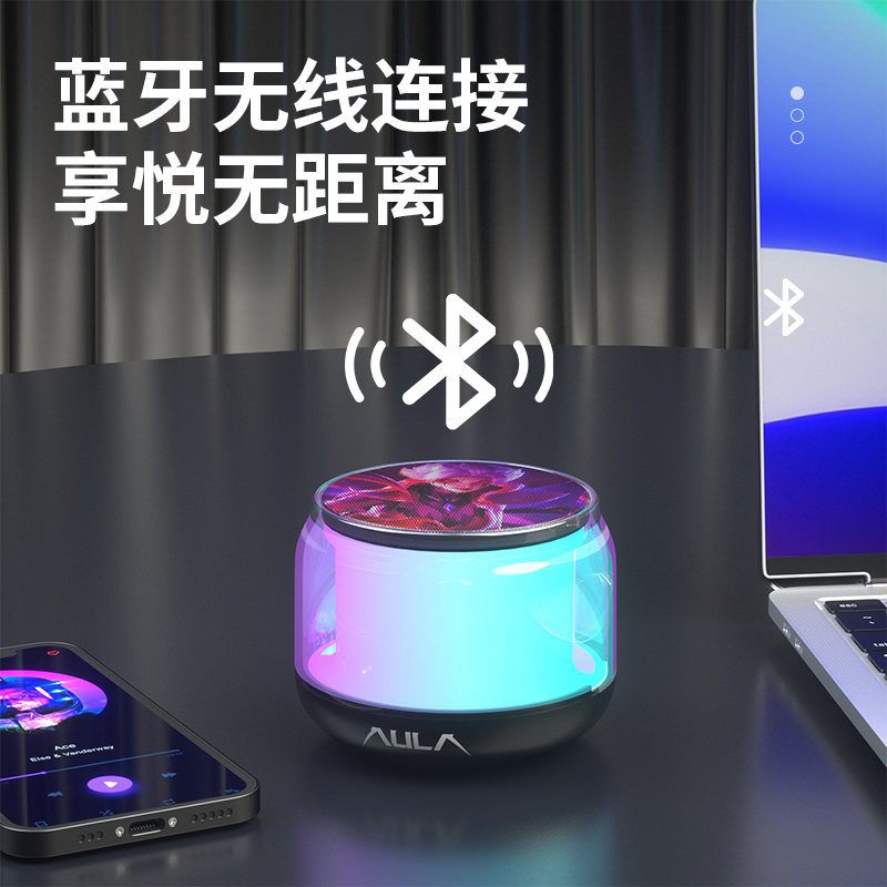 狼蛛(AULA) BS302无线蓝牙音箱迷你小型音响便携式电脑桌面家用户外低音炮车载播放器大音量 黑色RGB灯效【红色蜘蛛女王】