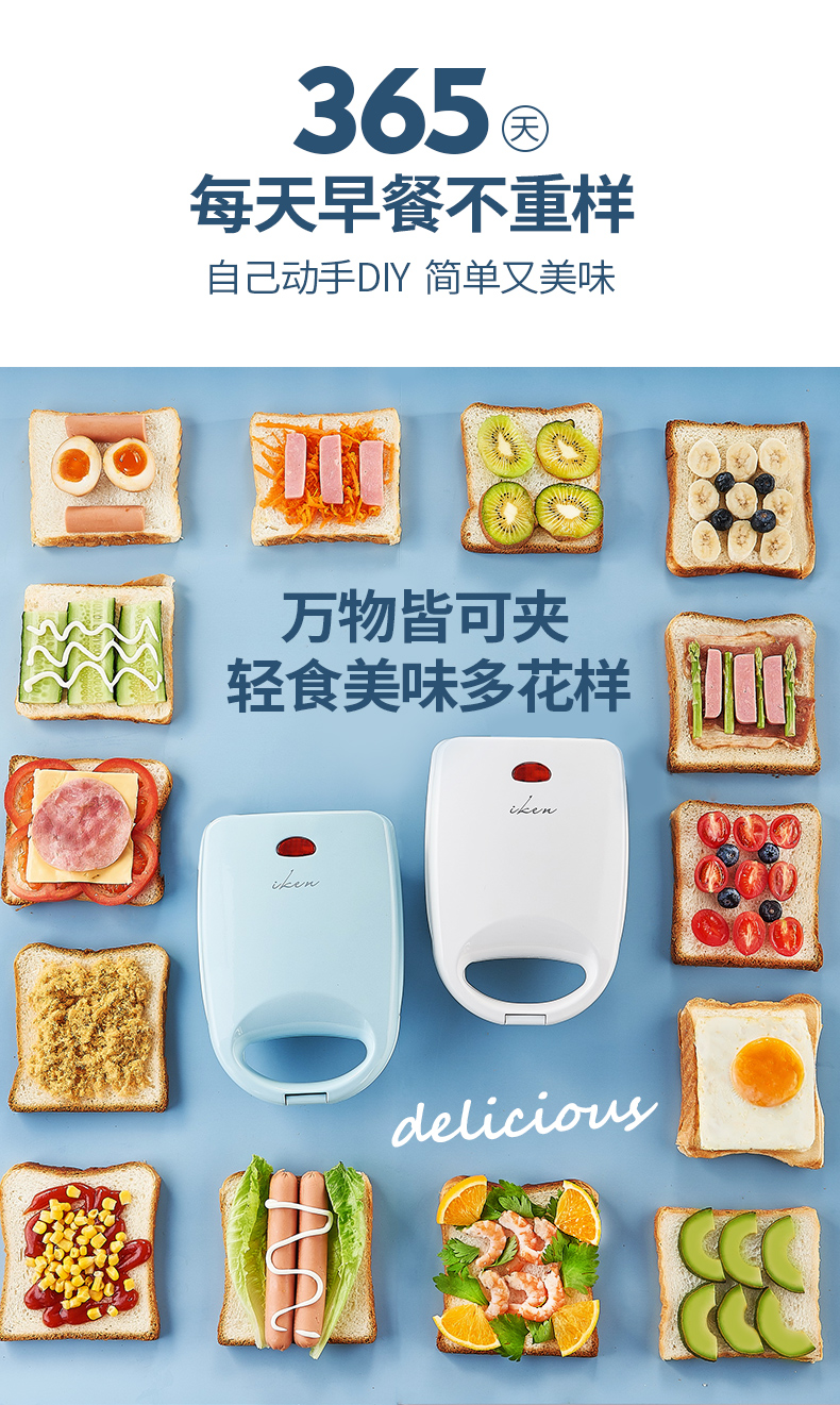 iken三明治机家用轻食早餐机三文治华夫饼机电饼铛吐司面包压烤机 128.00元