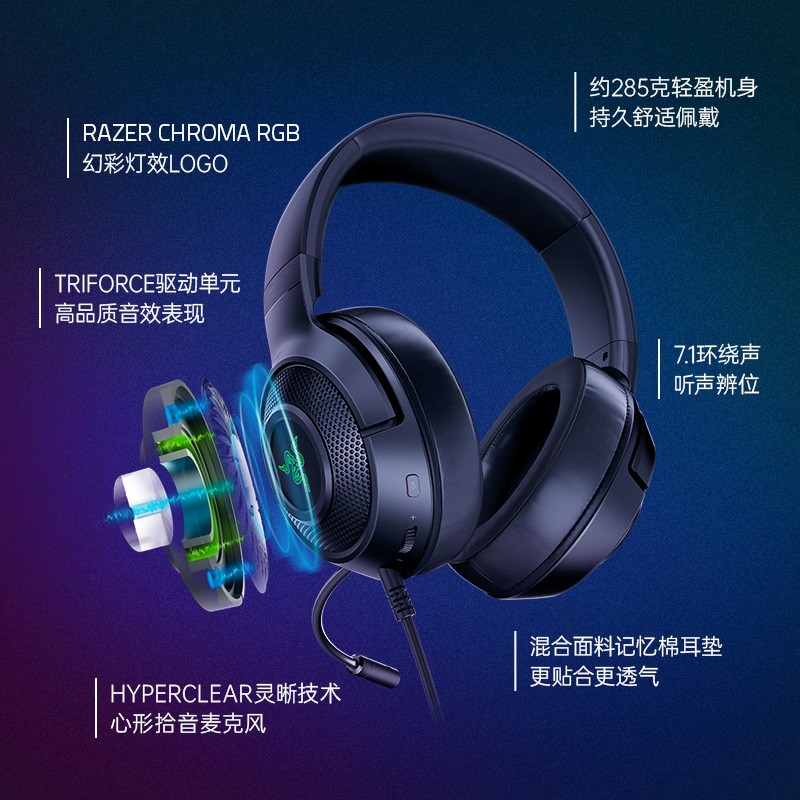 雷蛇 Razer 北海巨妖V3 X 有线USB 头戴式 7.1声道 电竞 RGB灯 游戏耳麦