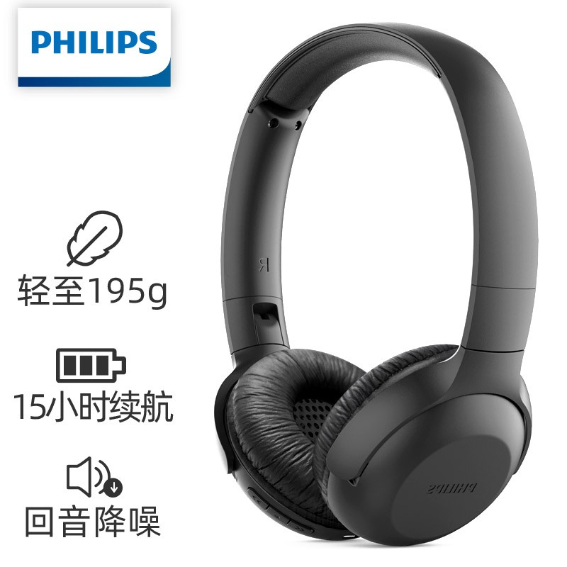 飞利浦(PHILIPS)头戴式耳机蓝牙耳机通话降噪学生耳机手机电脑通用苹果华为小米安卓手机通用H202黑