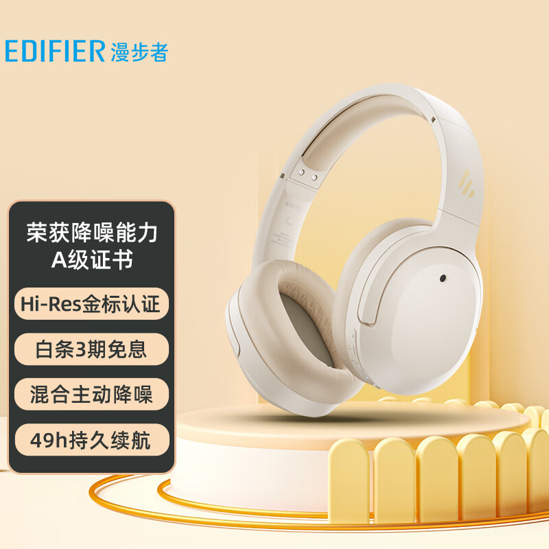 漫步者(EDIFIER) W820NB头戴式混合主动降噪蓝牙耳机 适用苹果安卓索尼小米 云岩白【双金标版】+赠耳机包