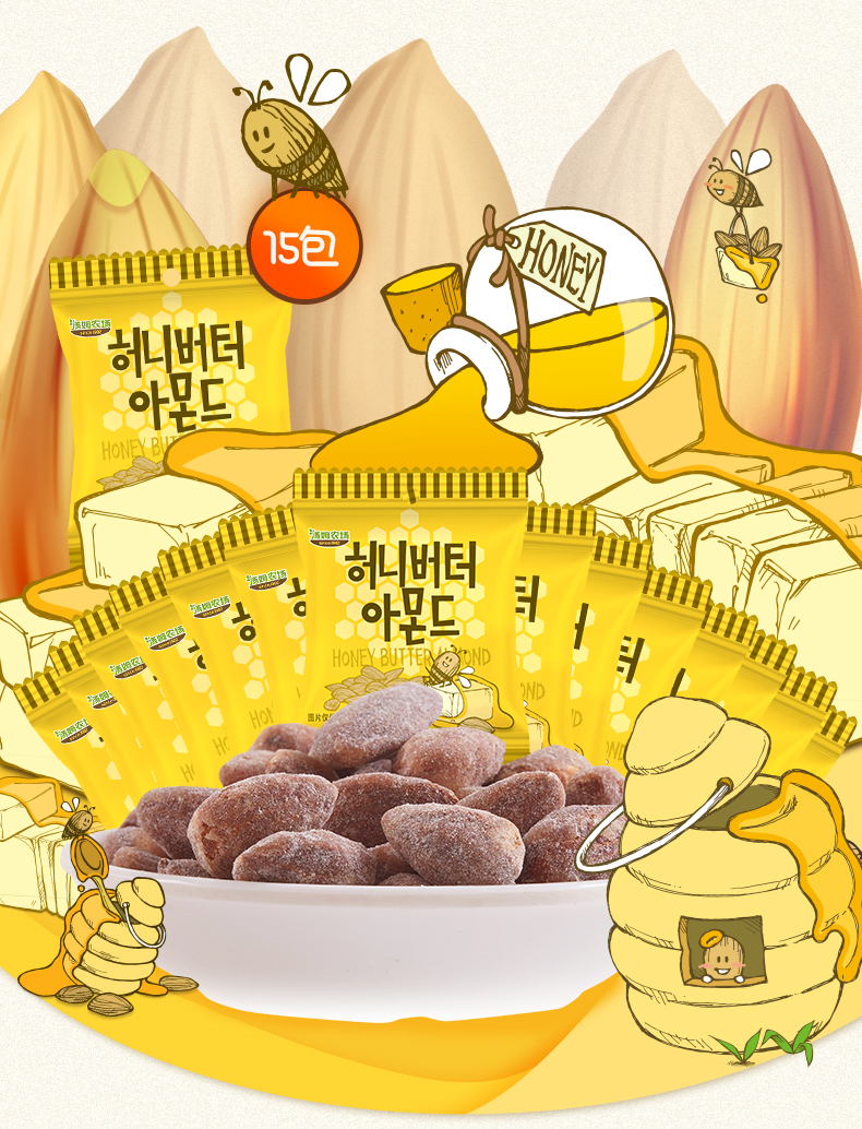 汤姆农场蜂蜜黄油扁桃仁网红巴旦木韩国进口大杏仁零食坚果15连包 38.90元