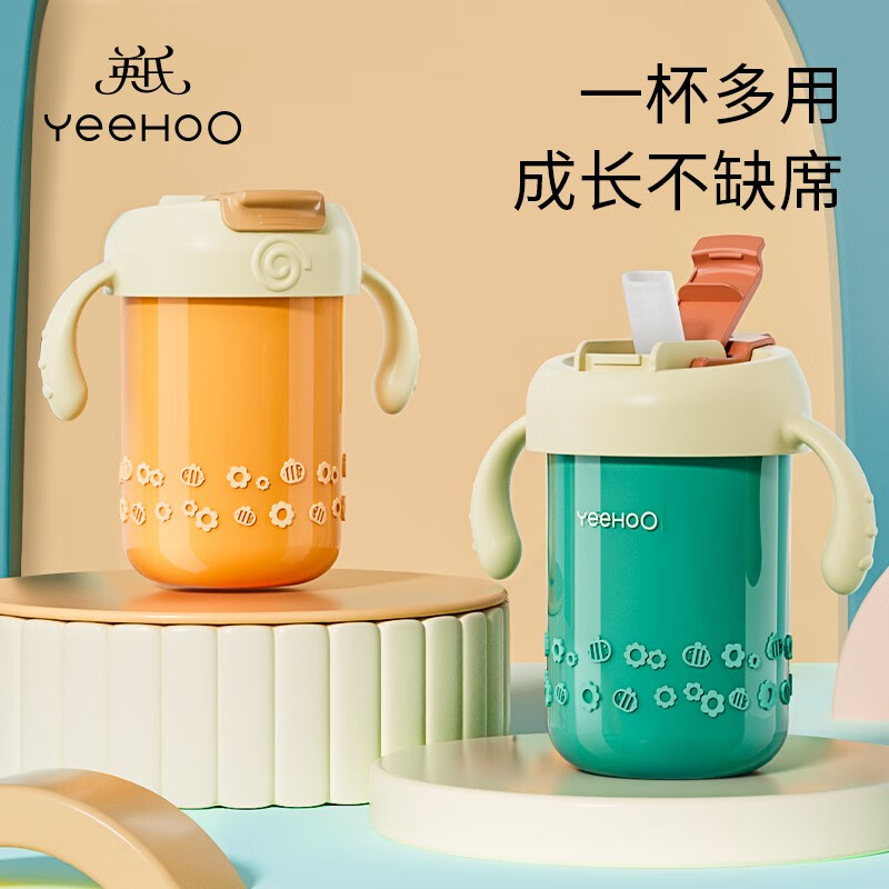 当季新品 英氏(YEEHOO)儿童牛奶杯宝宝水杯带刻度家用不锈钢宝宝吸管泡奶喝水杯子带手柄学饮杯防摔 (新橙色)多功能牛奶果汁杯带重力球吸管+直饮吸管