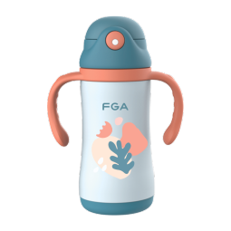 富光FGA儿童保温杯宝宝吸管杯学饮杯316不锈钢带把手喝水壶手柄背带两用水杯子 蓝色 360ml