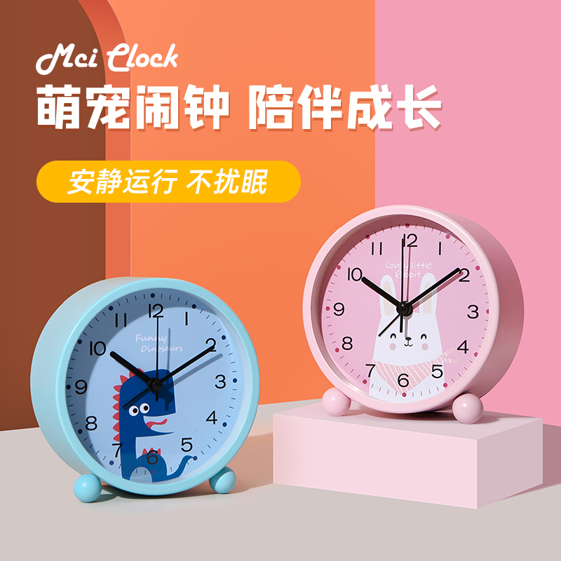 码仕 闹钟创意儿童小闹钟卡通可爱夜光学生床头钟懒人电子钟 粉色萌兔