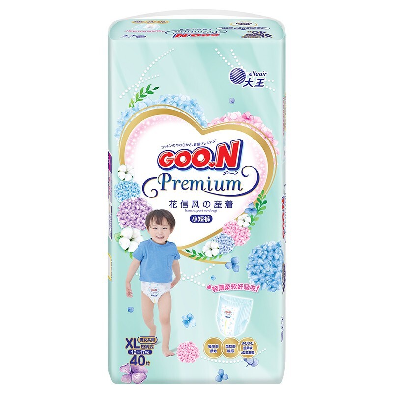 GOO.N 大王 花信风纸尿裤尿不湿 婴儿尿布轻薄透气尿片尿裤吸水隔尿垫加大码旗舰店 尺码可选 拉拉小短裤 XL40片(12-17kg)