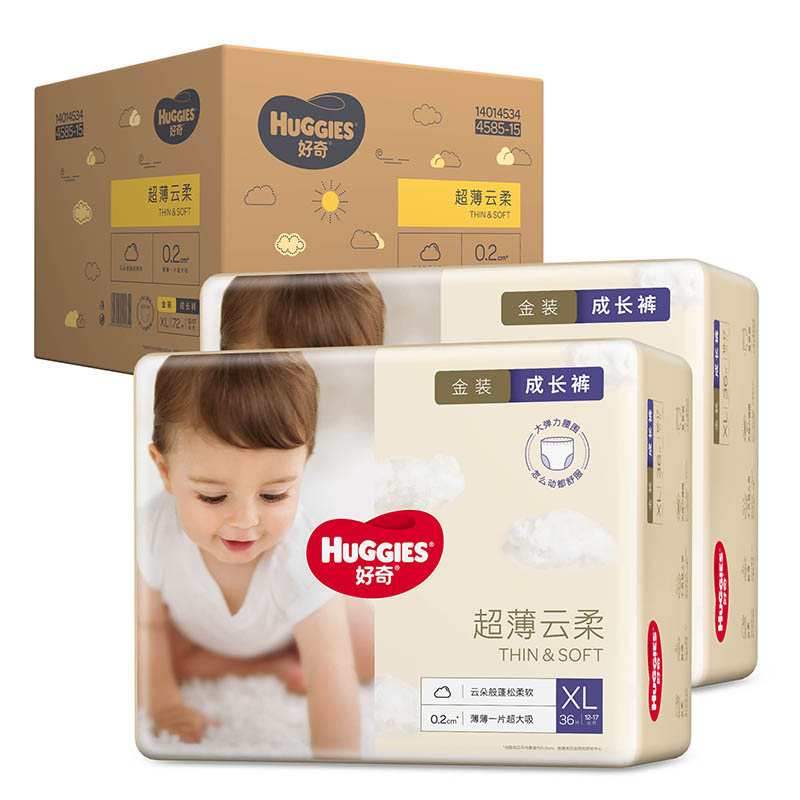 好奇Huggies金装拉拉裤XL72(12-17kg)加大码男女宝宝通用婴儿尿不湿成长裤超薄透气