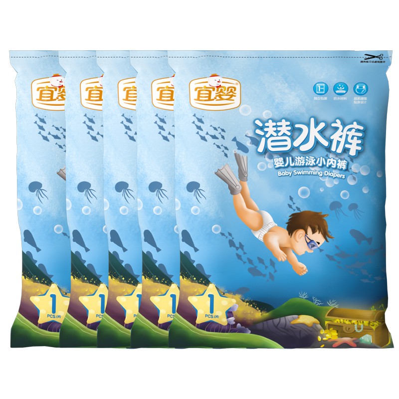 宜婴游泳裤潜水裤婴儿游泳拉拉裤小内裤一次性独立包装拉拉裤防水尿不湿宝宝洗澡纸尿裤入水不膨胀 L号5片【9-14kg】